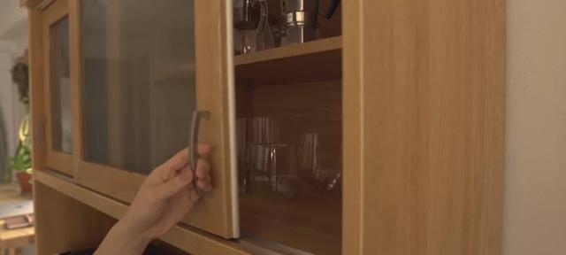 长吧台的右侧,连着一个实木柜子,负责收纳餐具和食物。