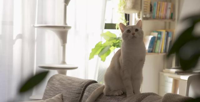 在绿植的掩映下,角落里的猫窝也很可爱。