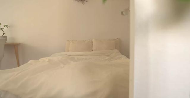 双人床挪到角落后,睡觉氛围更加稳定安静。以后可以在床的左侧加一个窗帘,让它单独站立。