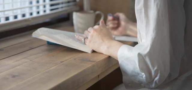她在书架上找到一本书,边喝咖啡边读。你选的书一般都是翻译成英文的,你可以用自己最感兴趣的方式自学英语。