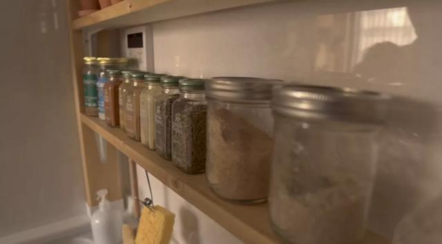 水槽上方增加了一个手工制作的搁板,用来存放常用物品和喜欢的调料。