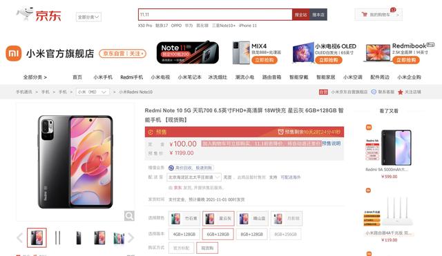 红米Note 10作为主打性价比的爆款新品,支持双卡双5G功能,信号更强,功耗更低,针对高铁、电梯等产品使用场景的特别优化,保证了网络信号的强大,让你无时无刻不在体验网络的快。5000毫安电池,弗农700八核高性能处理器,不仅能跑得快,还能跑得久。JD.COM 11.11,6+128版本拿到了1199元的价格。