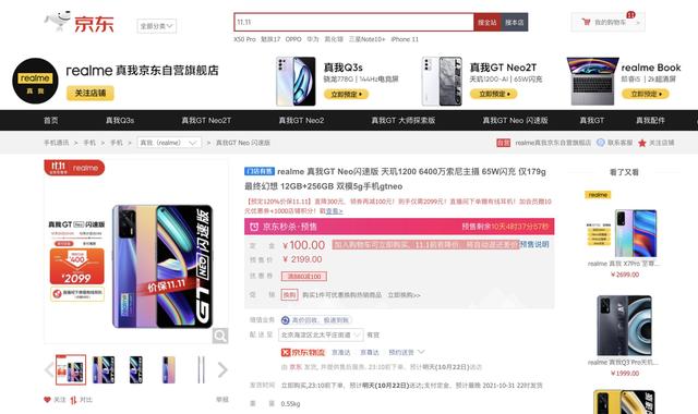 Realme GT Neo闪充版搭载天球1200芯片,6400万索尼主摄像头无压力,支持65W闪充,重量仅179g。现在11.11现货在JD.COM有售,12+256版本售价2099元,价格保障11.11。刚刚发布的realme Q3s配备了骁龙778G处理器,144Hz可变帧屏幕,5000mAh电池,硬核屏幕,无与伦比。现在马上去JD.COM下订单。6+128GB版售价1599元,优惠券立减200元。售价1399元,11.11保价。