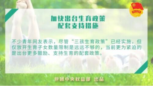 不少年轻网友表示,虽然“三孩生育政策”已经实施,但仅仅放开生育数量是远远不够的。目前更迫切的是出台更多鼓励和支持生育的配套政策。