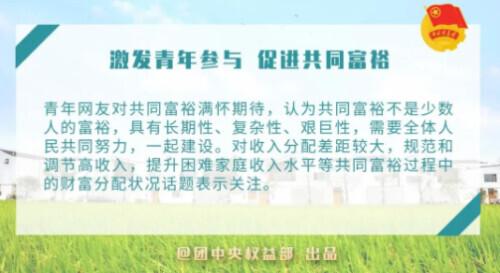 青年是共同富裕道路上的“生力军”。网民建议改善收入群体结构,搭建更广阔的青年发展平台,进一步激发青年参与促进共同富裕的积极性、主动性和创造性,让每一个青年都成为共同富裕的积极贡献者和见证者。要推动青年发展,投身乡村振兴,实施“归巢”,吸引青年回流,不断提高青年创新创业素质,以青年之力带动区域繁荣,让青年群体在实现共同富裕的同时满足自身发展需求。