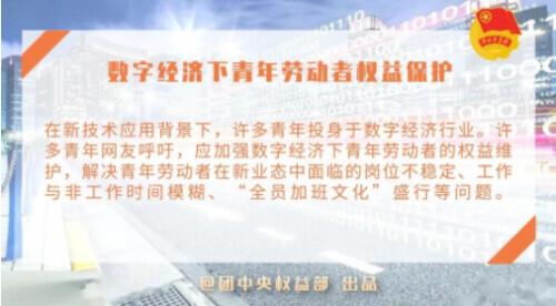 在新技术应用的背景下,许多年轻人投身于数字经济行业。许多青年网民呼吁加强青年劳动者在数字经济中的权益,解决青年劳动者在新业态中面临的问题,如工作不稳定、工作和非工作时间模糊、“全员加班文化”盛行等。