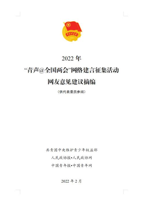 2022年2月11日,共青团中央青年权益部联合人民政协、人民政协、中国青年报、中国青年网,启动2022“青声@人大”网络征集活动,听取青年的意见和建议。活动秉承“发出青年的声音,提供青年的智慧,汇聚青年的力量”的宗旨,充分发挥共青团的桥梁和纽带作用,有序地向有关方面反映青年的思想和愿望,有效地向党和政府传递青年的见解,为促进国家经济和社会发展做出贡献。