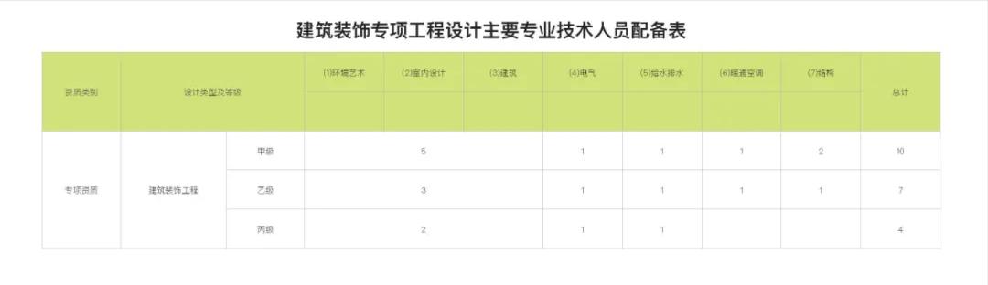 (3)主要专业技术人员配置表中规定的人员中,非注册人员应参加过不少于2项中型建筑装饰工程设计项目,并具有中级以上专业技术职称。