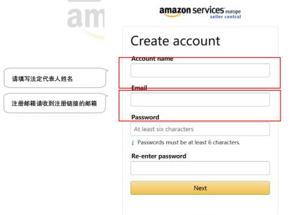 之后输入亚马逊发送到这个邮箱的验证码,输入正确的公司法定名称,使用拼音,首字母大写。