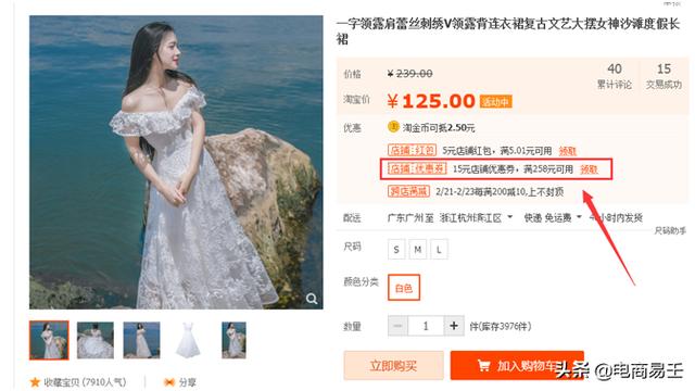 例如,在服装行业,连衣裙的商店买家一方面会关心款式,另一方面会货比三家,看看哪家可以提供折扣。如果店铺不设置优惠券,促销氛围较弱,买家更倾向于选择有优惠券和活动的店铺购买,所以不设置优惠券会在一定程度上导致有兴趣的买家流失,影响店铺的转化率。
