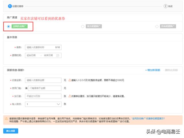 选择全网自动推广(全网买家都能看到的优惠券)。