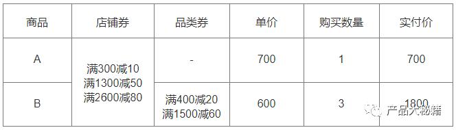 举个简单的例子:商品A的价格是700元,可以使用300减10,1300减50,2500减80的店铺优惠券。对于接下来的两个项目A,那么用户可以使用300减10或1300减50的优惠券。只有符合优惠券使用规则的优惠券才是“可用优惠券”。