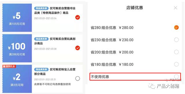 不过想留在一线,还是要给用户无券运营,看看下面的大平台是怎么搭建的。我把所有可用的优惠券都列出来了,不想用,就不选。但是,某宝相对简单粗暴。如果你不使用它,你就不需要它。