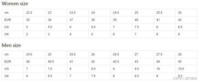 所以在选择鞋码的时候,实体店可以直接试穿。如果是网上买的,不用担心。一般店家也会给出国内鞋码对比表。只要查一下表,找到与你的脚长相对应的尺码就行了!