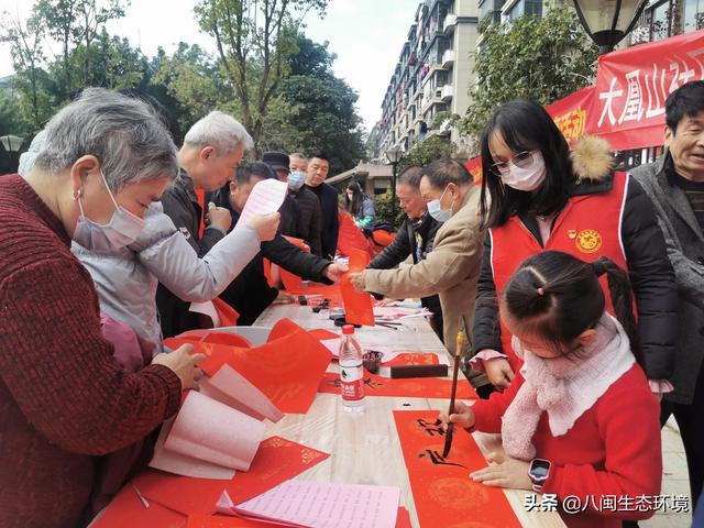 社区的书法爱好者为居民写春联和祝福。一副火红的春联象征着平安吉祥,为即将到来的春节增添了浓浓的喜庆色彩。海峡银行工作人员为相邻的两个社区营造春节氛围,开展第三代社保卡升级换卡志愿服务活动。中德骨科医院还为现场居民开展了义诊活动。来自福建省福州港务管理局航道管理站的志愿者也贴出春联,挂起灯笼,为合作伙伴送上祝福。刘阿姨说,“这样的活动很有创意,她也会号召身边的人加入到绿色文明传播的队伍中来。”
