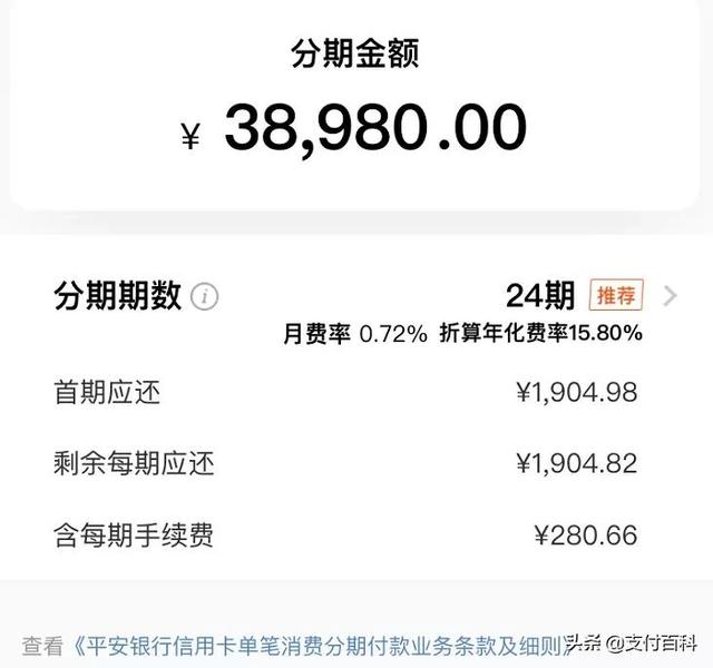 平安银行目前仍执行标准利率,24期月息0.72%,折算年化率15.8%。相比其他银行信用卡分期年利率不到10%,平安银行的信用卡分期利率吸引力不够。