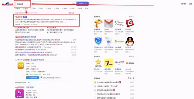1.打开电脑浏览器,使用百度搜索引擎;搜索“QQ邮箱”