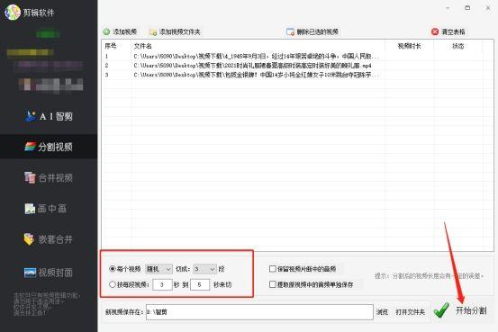 如何剪切视频中的一部分(怎么将视频自由分割成多段) 颠倒众生的糊涂 2022-04-20 04:29:31 我们在使用视频素材的时候,经常需要对视频剪辑进行编辑,尤其是在对视频进行混音和剪辑的时候,每次分割和添加视频都是非常麻烦的。今天给大家分享一个可以自动将视频分成多个片段的方法。 1.我们在处理时需要使用古桥之剑软件。这个软件支持视频的批量处理,非常适合从事电商和自媒体的朋友。我们进入软件的视频分割功能。 2.然后导入要分割的视频到软件中,可以同时导入多个视频。该软件支持自动分割。 3.接下来,我们来选择切割方式。在这里,我们可以将视频随机剪切成几段,也可以将视频定制到需要的时间进行剪切。你可以根据自己的需要来设置,设置好之后就可以开始切割了。 4.处理速度比较快,不会花太多时间,有效提高了我们的工作效率。处理完成后,我们可以打开文件夹查看,已经分割成功。 5.每个视频都按照我们的要求切割成了几段,而且每一段视频都非常高清,画面非常流畅,没有压缩画质,不会影响大家的二次使用。 今天的分享到此为止。如果你也需要经常处理视频,可以试试古桥智健软件,它也支持修改视频MD5,合并等很多功能。感兴趣的朋友可以在古桥科技官网下载使用。 如何截取一段视频 您可以还会对下面的文章感兴趣 录像如何截取一段视频(捕捉视频超燃画面,学会视频片段截取,下一个剪辑大师就是你) 截视频怎么截(电脑上怎样截图?分享5个截图方法,而且能截取任意形状) pr如何截取一段视频(PR视频剪辑教学,基础工具学起来) 花瓣剪辑如何截取一段视频(《花瓣剪辑》剪视频方法) 如何剪辑视频中的一段(手机剪映如何快速剪辑视频呢) 相关文章: 淘宝搜索排名权重(深度解析淘宝搜索权重,店铺怎么才能获得流量) 北京最大成人用品批发市场(疫情期间,人们对情趣用品需求猛增,百万盒避孕套脱销) 开母婴连锁店要多少钱(恒泰贝贝剖析开母婴加盟店的成本控制比例) 美团外卖兼职好做吗(我跑美团外卖35天的悲惨经历) 手机怎么截取电影一段的APP(手机上有哪些比较好用强大的视频剪辑软件?使用推荐抓紧收藏) it行业十大热门职位(婚恋市场“最吃香”10大岗位,公务员排第6,前三甲一个比一个壕) 国货护肤品哪个牌子好用又实惠(良心国货护肤品大盘点,品质不输大牌,性价比超高) 国货护肤品老牌子(5个暴露年龄的老国货护肤品,还是熟悉的包装,效果却不输进口货)