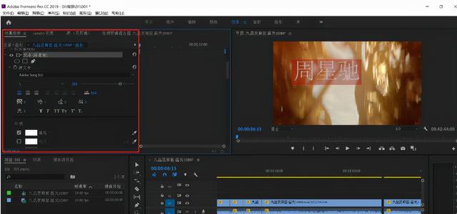 12.最后一个是文本工具,可以横向和纵向选择,通常在添加字幕或文本标题时使用。直接点击进入副本,可以在效果控件中更改位置、字体大小、颜色。