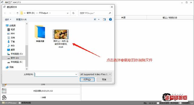 在出现的“添加文件”对话框中添加要处理的视频文件。