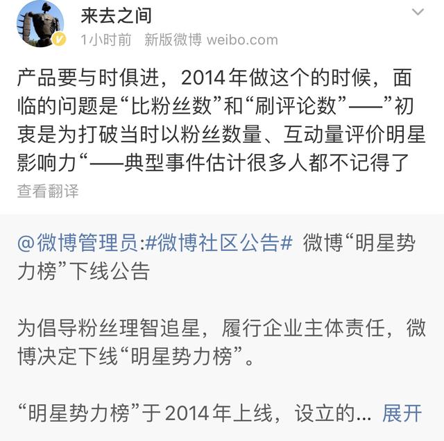 为了倡导粉丝理性偶像化,履行企业主体责任,微博决定下架“明星权力榜”。