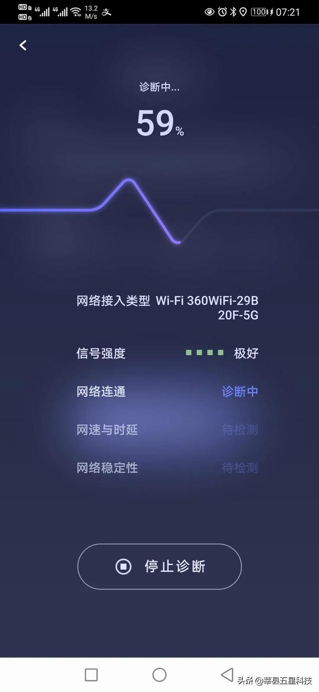 华为的一键测速软件还可以自动诊断网络故障。自动检测网络类型,判断信号强度,网络延迟和稳定性。