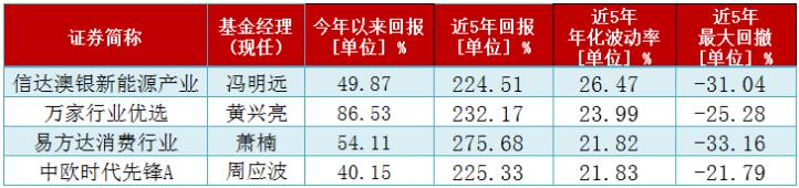 从数据上看也是如此。如冯明远管理的信达奥银新能源行业、黄管理的万家行业等优先。两只基金的年化波动率都高于肖楠管理的易方达基金。虽然前两只基金近五年回报低于易方达消费行业,但定投收益更好。