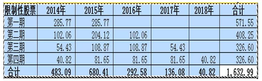 将限制性股票计划分为四个独立的股份支付计划,各年的费用分配如下表所示:(单位:万元)