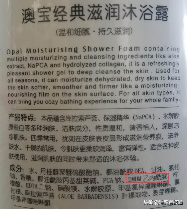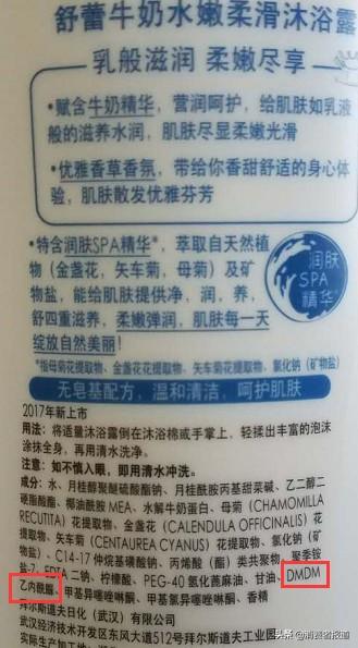 但为了防止皮肤敏感的消费者使用后出现过敏反应,购买时应注意包装上的成分信息。如果看到“咪唑烷基脲、双(羟甲基)咪唑烷基脲、DMDM乙内酰脲”等带有“尿素”字样的成分,这瓶沐浴露就会含有甲醛,可以根据自身情况避免使用此类产品。