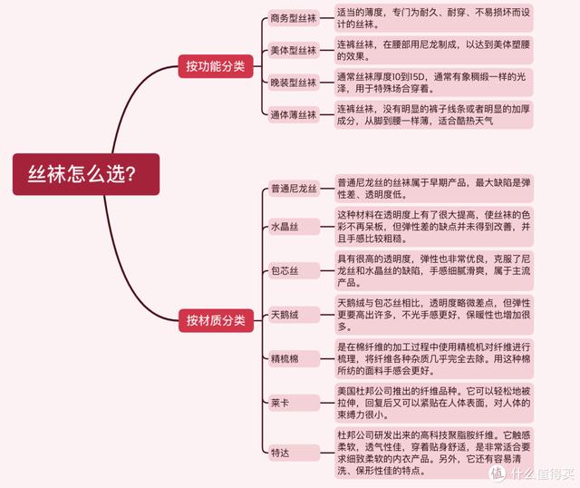 ④丝袜的种类~按长度划分-短丝袜、中统丝袜(膝盖以下)、长统袜(膝盖以上并配合吊带使用)、连裤袜。