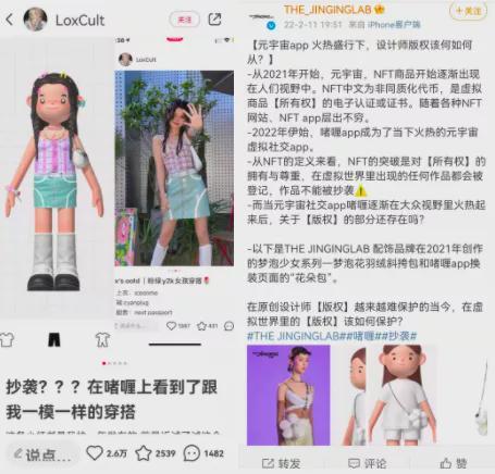 被认为可圈可点的人物和画风也被多方质疑为“虚拟抄袭”。一些博主表示,这种凝胶与他们过去笔记中的凝胶一模一样。一些配饰品牌也发文称,在啫喱里看到了一款与自己品牌去年打造的斜挎包非常相似的花包。