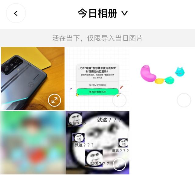 还有一个有趣的设定:如果你想从本地相册中分享,Gel只会帮你看当天的图片,所谓“活在当下”。