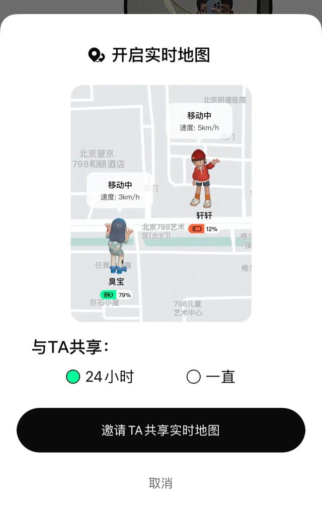 不像微信的实时地图,一旦开启“凝胶”的分享,就可以一直持续下去。