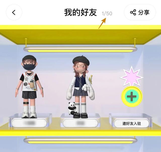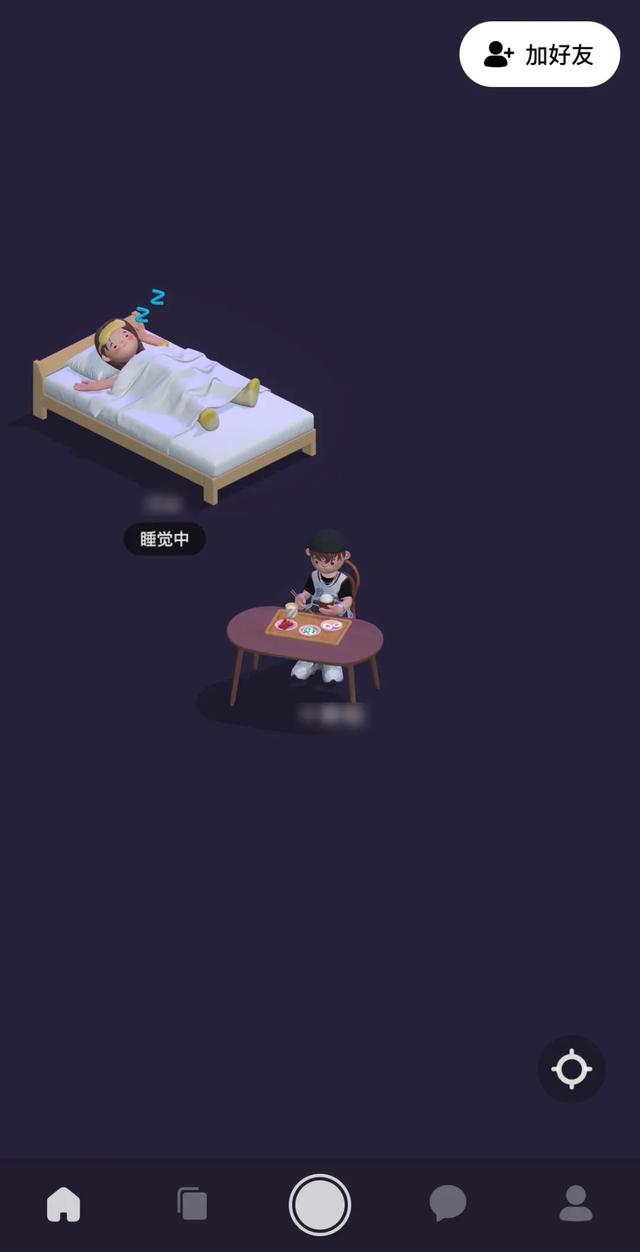 首页,这里会显示好友的虚拟形象,可以理解为3D好友列表,有思念宇宙的意思。