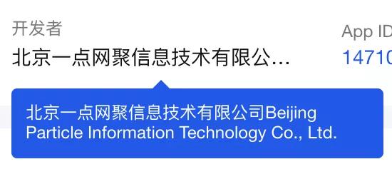 申请页面显示,“凝胶”的开发者名为北京一点网聚信息技术有限公司。