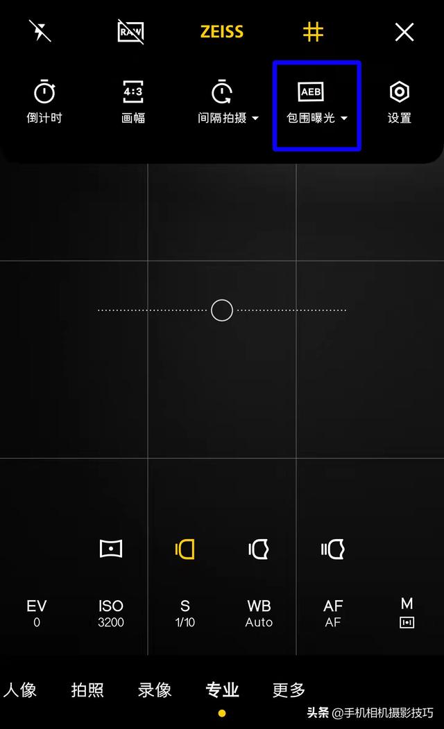 在专业模式下,点击上面的设置,会出现“环绕曝光”的选项。