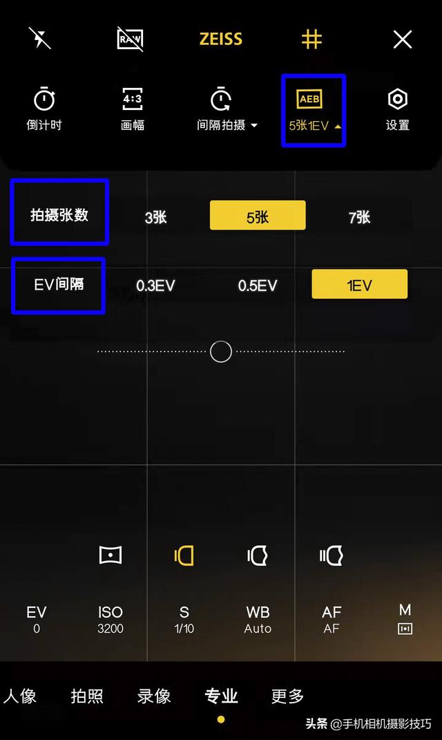 比如我的拍摄次数设置为5,EV间隔设置为1。