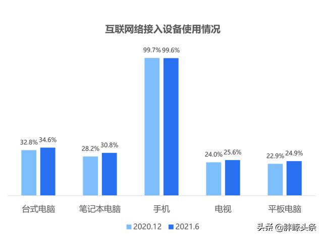 随着智能设备的不断发展和体验优化,用户的上网场景也在发生变化。截至2021年6月,中国网民使用手机的比例达到99.6%;使用台式电脑、笔记本电脑、电视和平板电脑上网的比例分别为34.6%、30.8%、25.6%和24.9%。虽然非手机占比看似远不如手机,但用户放在10亿网民的分母里,也不算小。此外,非手机用户的比例也在不断增加。相比手机用户,非手机用户的人群价值相对更高,他们的上网环境可能长期停留在客厅、办公室、书房、咖啡厅等特定生活场景。