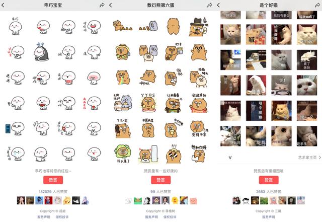 有博主以表情包“聪明宝宝”为例。两年下载量达到1.5亿次,创作者获得50万奖励,但这种案例并不常见。找了两个我经常用的表情包,赞赏的人从几十到几千不等。