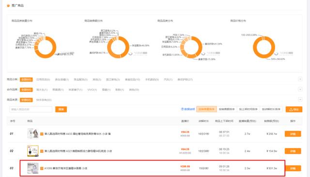 结合上面的人气趋势图可以看出,九点直播间人气最高的时候,正是“莫洛莎海藻精华面霜”上架的时候,面霜以2.3万的销量成为本次直播的第三大畅销产品。而且399元/瓶的面霜单价也不低,可见观众对它的喜爱。