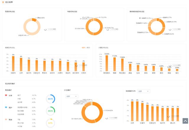 根据直播间观众画像的情况,包括男女比例、年龄分布、地域分布、粉丝购买偏好等,帮助商家更好地定位直播观众画像。