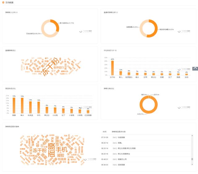 根据飞瓜【互动数据】显示,本次直播中观众呼声最高的三款产品分别是冻干粉、面膜和手机。