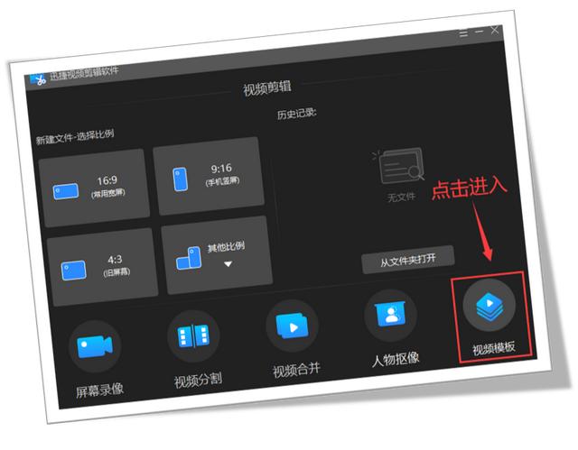 2.然后安装在电脑上,打开这个工具。在主页上,你可以看到除了视频剪辑,底部还有五个功能。我们选择“视频模板”功能。