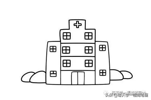 医院的标志是十字架,它位于大楼的前面。与教堂不同的是现代建筑风格。医院的楼层比较高,形状也比较规整。让我们来看看简单的医院是如何用边肖画出来的。