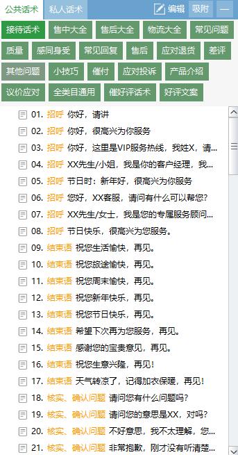 推荐一款客服宝聊天助手,顾名思义就是我们客服的聊天工具。只要在上面编辑我们所有的文字,在任何一台电脑上登录都是你的文字,省去了很多麻烦。除此之外,客服宝可以吸附在任何聊天软件上,可以在任何电商平台上使用,非常方便我们客服。你可以试试。