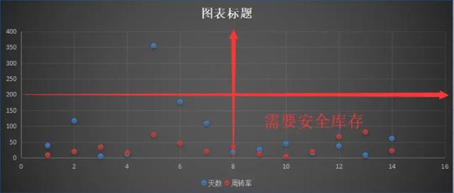 图例中,库存天数少,库存周转率高的产品,也就是上图中标注需要安全库存的零件,需要做好安全库存准备!