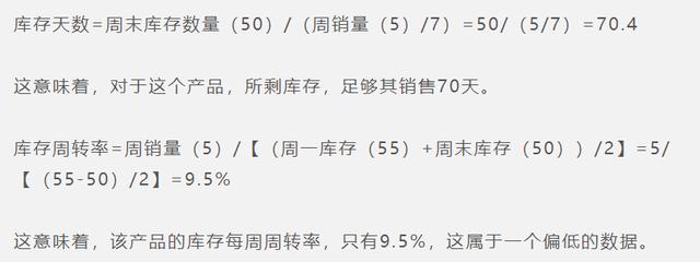 这里引入两个概念:库存周转率和库存天数(周是时间单位)。