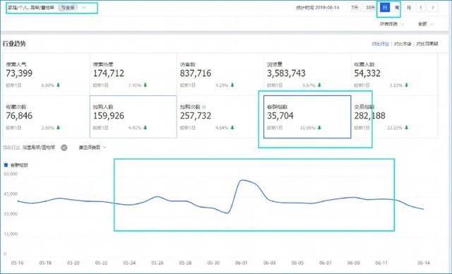 这与产品所在品类的活动爆发程度有关。我们需要计算活动爆发度,数据来源是《市场洞察》中的客群指数。一般选取上一年618的数据,2019的数据如下: