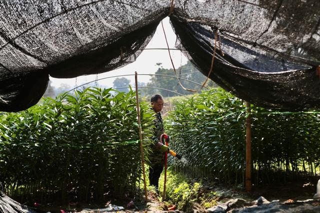 从昆明出发往西南,200多公里外的玉溪市新平彝族傣族自治县撒加镇,以“褚橙”闻名。二月的南崩村,背靠巍峨的哀牢山,面对蜿蜒的河流,没有了初春的萧瑟,一片绿意盎然。赵,一个25岁的昆明男孩,和他的父母正在百合地里忙碌。“虽然离昆明很远,但这里气温高,没有霜冻,冬天也能种出好百合。”种了20年百合,赵的父亲找到了一个适合冬夏种百合的“密码”。冬天,他在这里“扩张”,租地种百合。