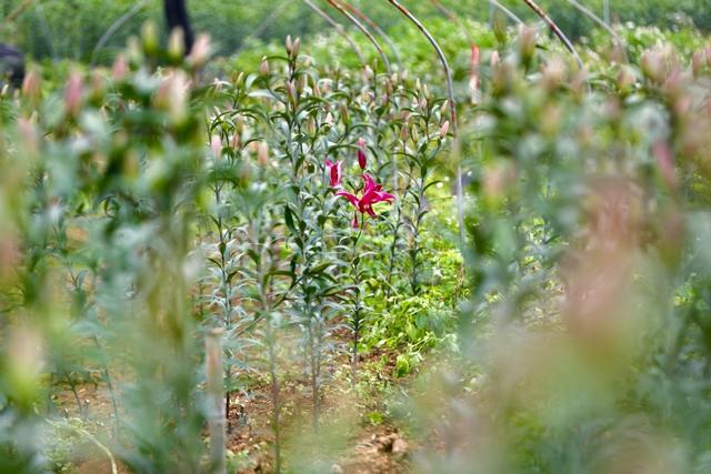 ▲百合地里,有的迎风绽放,微笑着;有些正处于萌芽状态,半藏则半露在外面。宋飞/摄